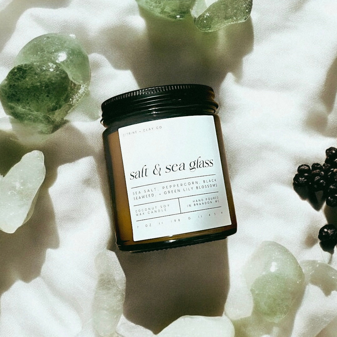• Salt + Sea Glass – Sea Salt, Peppercorn, Black Seaweed, Green Lily Blossoms